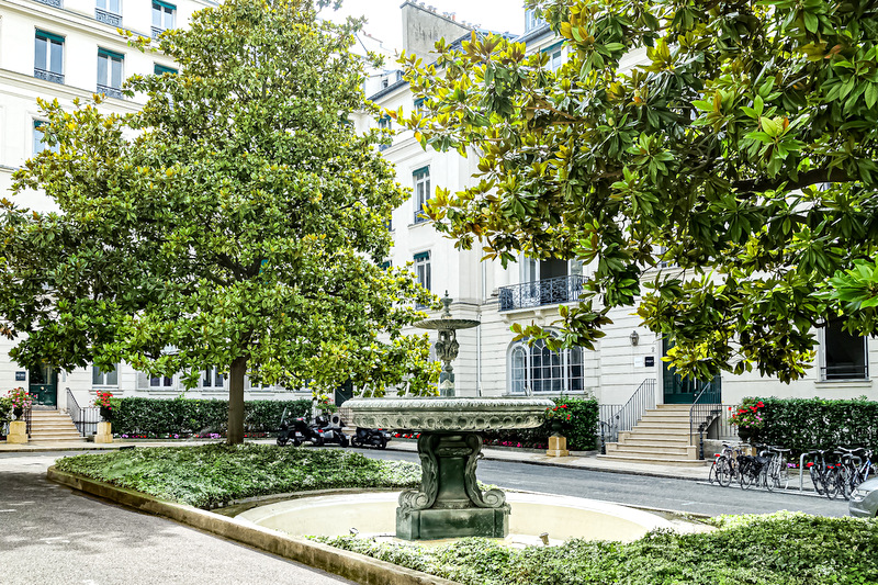 La porte principale est tout le temps fermée avec accès par digicode mais nous avions eu la chance de pouvoir profiter d’une ouverture de porte pour rentrer et avoir accès au square, qui est vraiment très charmant.